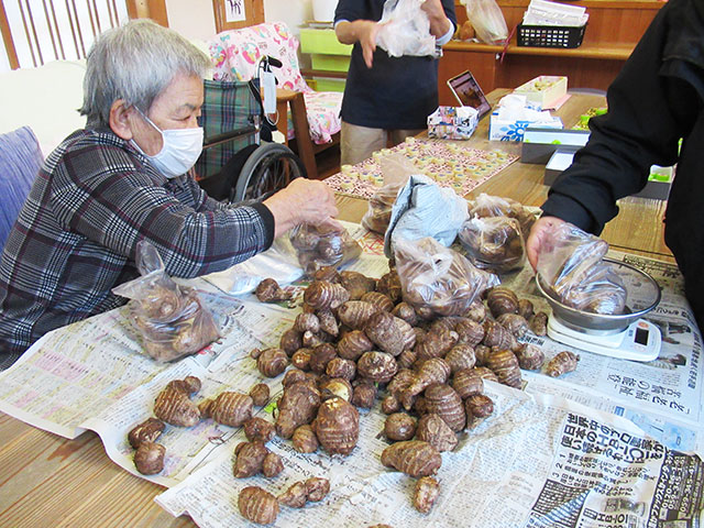 里芋は、煮物や味噌汁にして昼食で頂き、「軟らかく美味しい」と喜んでいました。