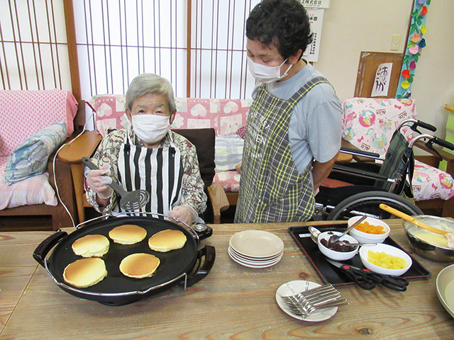 南知多町デイサービスサテライトでは、フルーツパンケーキを作ってお祝いしました。