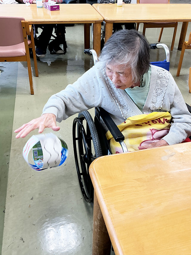 みなみ苑で3時のおやつを頂く前に体を動かして美味しく食べましょうということで簡単なゲームをしました。