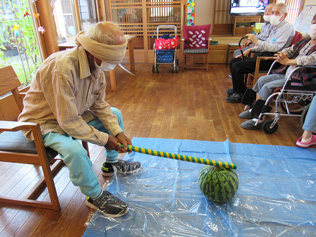 頂いたスイカでご利用者はスイカ割りを楽しみました。